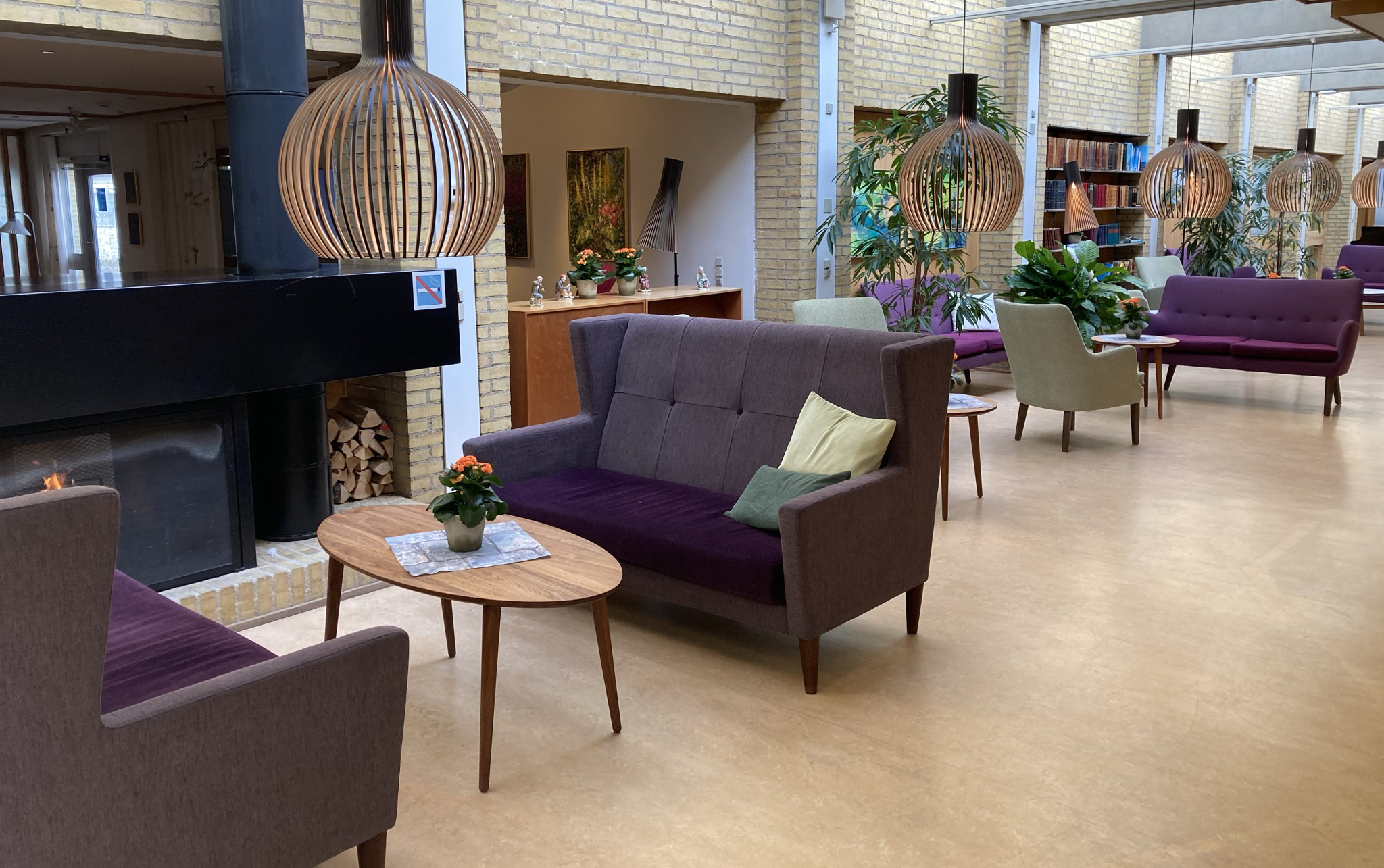 Projektet omfattede indretning af det centrale fællesområde, der trængte til at få et tidssvarende og hyggeligere udtryk. En spændende opgave, hvor der skulle tages stort hensyn til de ældre beboeres behov, begrænsninger og tilstand, samt hvor oplevelsen af rummet skulle hæves til et andet niveau.